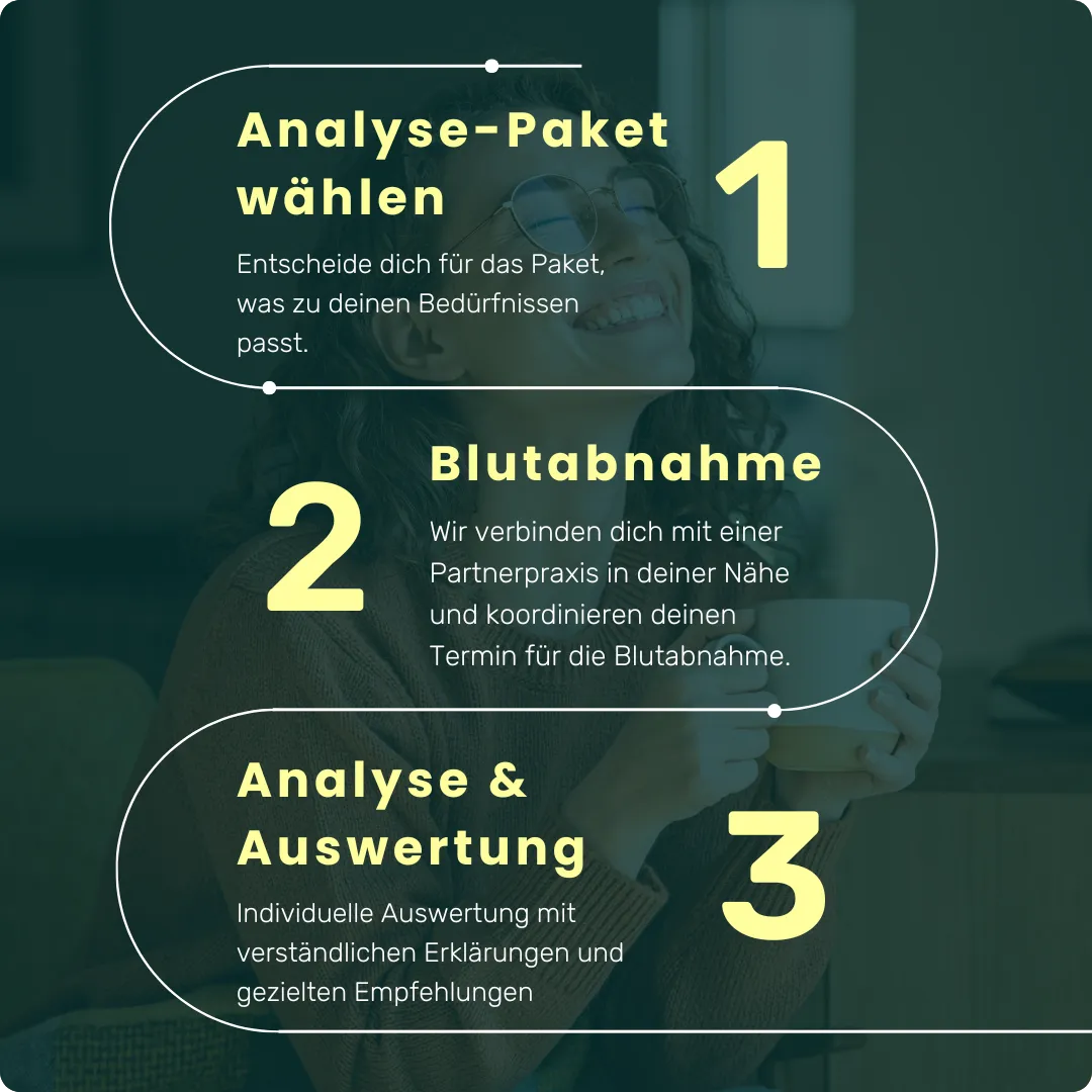 Ein Mangel an Vitaminen, Mineralstoffen oder ein gestörter Entzündungs- oder Hormonhaushalt kann dazu führen, dass Deine Energie abnimmt, obwohl Du „eigentlich gesund“ bist. Diese Analyse liefert Dir die Basis, um gezielt an Deinem Energielevel und Wohlbefinden zu arbeiten.